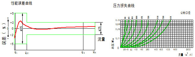 示值誤差限:從分界流量到過載流量為 ±3%; 從最小流量到分界流量(不包括分界流量)為±5%。
