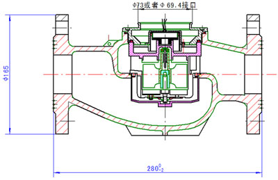 DS97TAR多流束有磁熱量表流量計的結(jié)構(gòu)如圖,其工作原理是:熱水進入流量計,經(jīng)進水導向孔沖擊計量腔內(nèi)的葉輪旋轉(zhuǎn),再經(jīng)出水導向孔流出流量計。葉輪上面嵌有磁鋼隨葉輪旋轉(zhuǎn),在隔板上端的韋根遠傳組件,接受葉輪旋轉(zhuǎn)的周期信號。其殼體采用優(yōu)質(zhì)黃銅,經(jīng)鑄造、數(shù)控機床和組合機床加工,機械強度好、尺寸精度穩(wěn)定一致,塑料零件選用進口的高強度耐熱工程塑料,密封件采用優(yōu)質(zhì)耐熱材料。因此,該流量計完全能夠適應國內(nèi)供熱系統(tǒng)的惡劣工作環(huán)境。